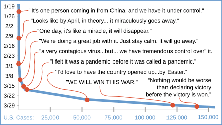 First of all, I want to remind you that in January, Trump was told that this virus was dangerous. But that same month, he said it wasn’t dangerous and was a hoax. Really? A hoax? Don’t believe that for a second. Look at this quote in a recent article from medium.com. “Note: The Trump campaign claims that this marks the beginning of the federal government disease control experts becoming aware of the virus. It was 10 weeks from this point until the week of March 16 when Trump began to change his tone on the threat.” I remind you, this was in January. In January, almost NOBODY knew what would happen to our country, and the president was already lying about the scale of things.